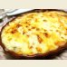 (5)グラタン皿に(2)の挽肉を敷き、(4)を重ねます。