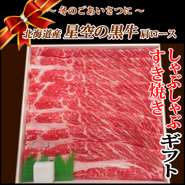 【歳暮KZB-1】北海道産 星空の黒牛 肩ロースすき焼き・しゃぶしゃぶギフト(500g)