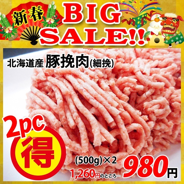 【新春BIG SALE】北海道産 豚挽肉(500g)×2パック