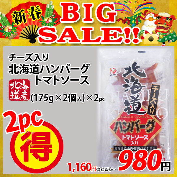 【新春BIG SALE】チーズ入り北海道ハンバーグ トマトソース(175g×2個入)×2パック