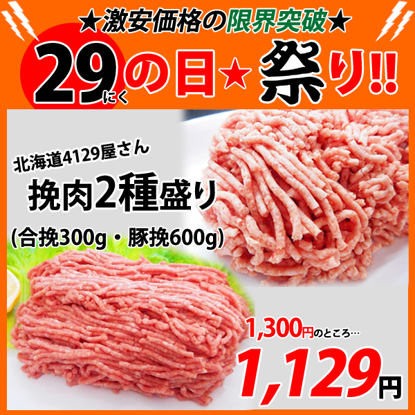sp【29の日★祭り】北海道4129屋さん 挽肉2種盛り (2種・計900g)